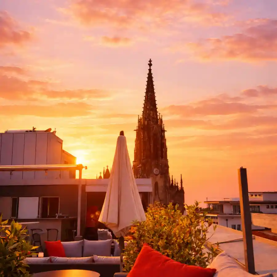 An lauen Abenden lädt unsere Dachterrasse zu einem atemberaubenden Blick über Basel ein.